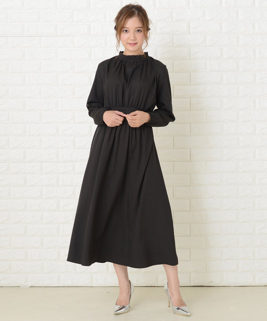 スタンドフリル襟 長袖 ワンピースドレス