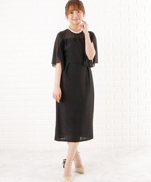シフォン袖Iラインレースワンピースドレス