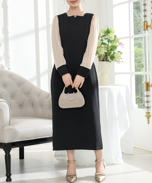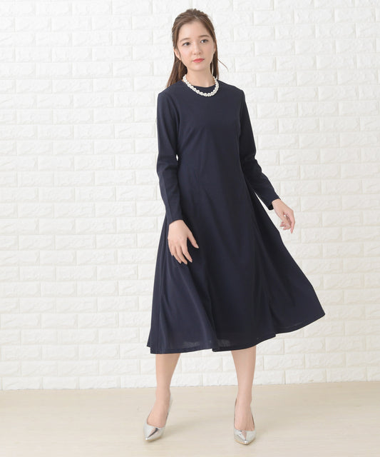 シンプル長袖フォーマルミモレ丈ワンピース・ドレス