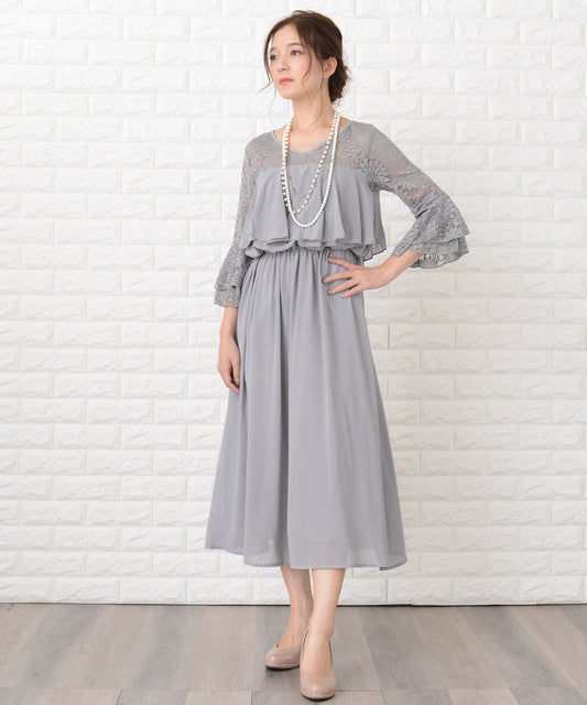 シフォン袖レースロングワンピースドレス