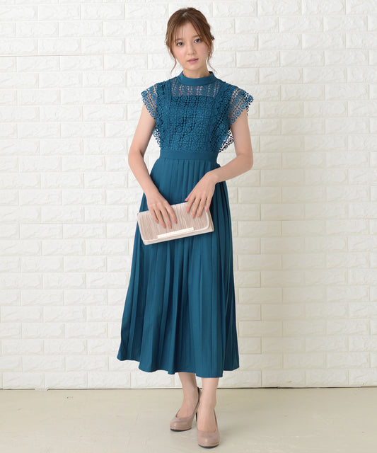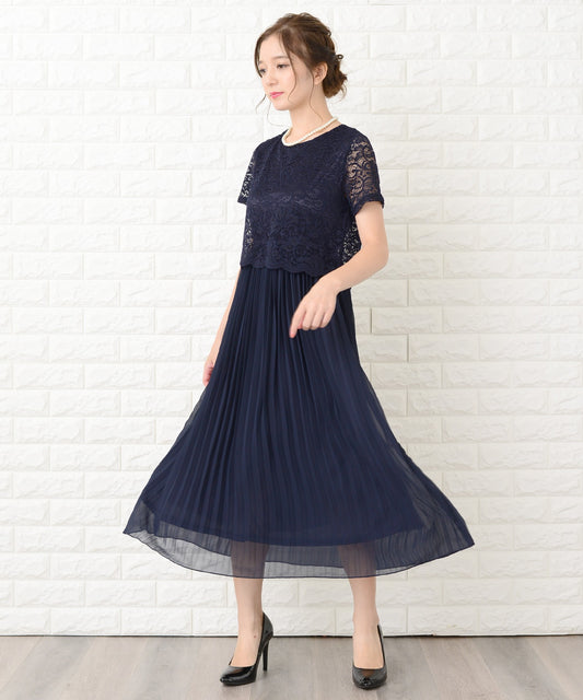 セットアップ風レース半袖×プリーツロングスカート フォーマルワンピース・ドレス