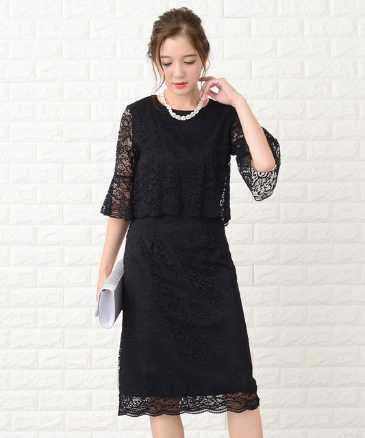 セットアップ風五分袖レースフォーマル膝丈 ワンピース・ドレス