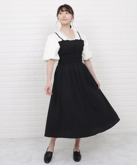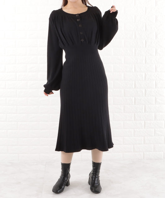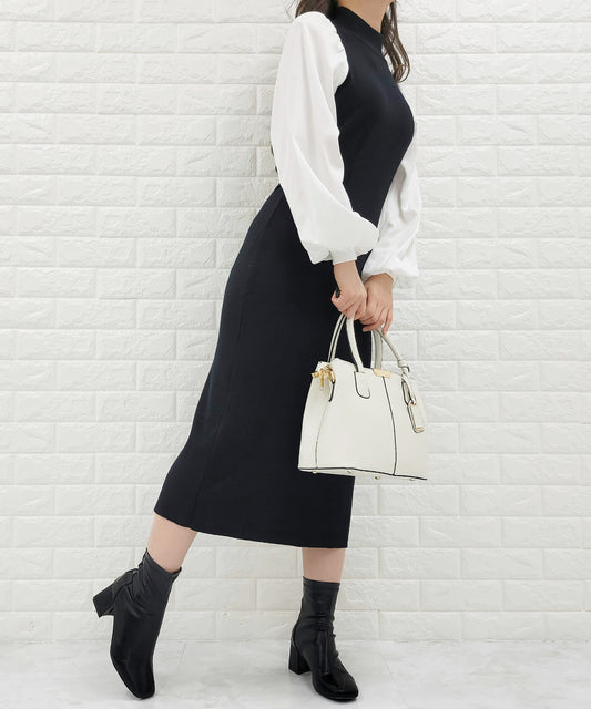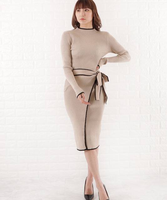 ソリッドカラー レイヤード風 リブ ニット ワンピース