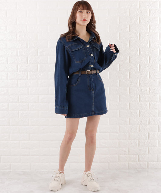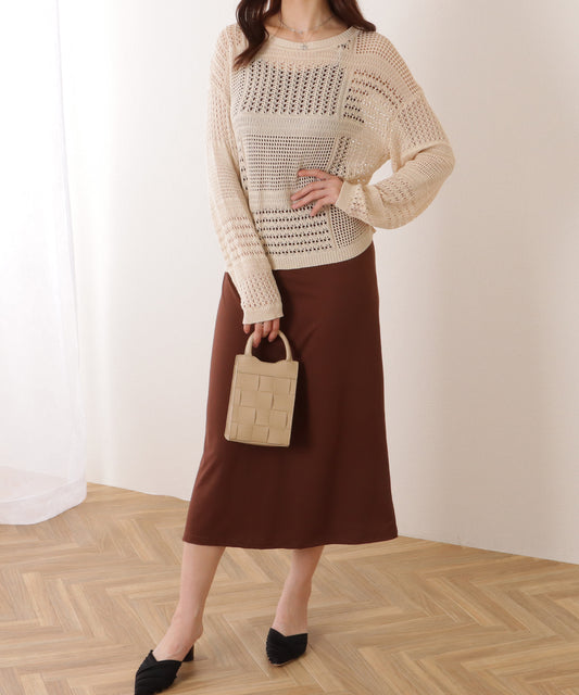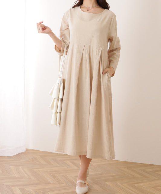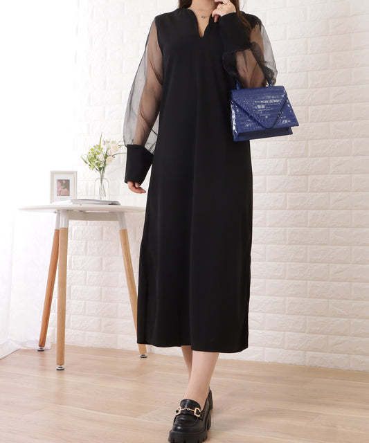 ソリッドカラー キーネック バルーン袖 マキシ ワンピース