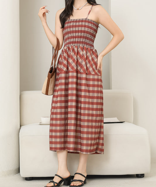 チェック柄 シャーリング キャミソール ロング ワンピース
