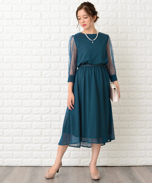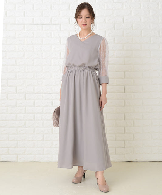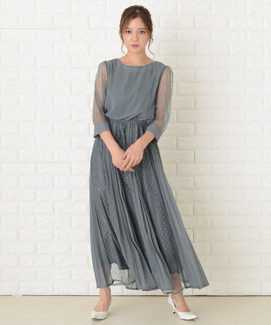 ドットチュール袖ロングドレス ワンピース・ドレス