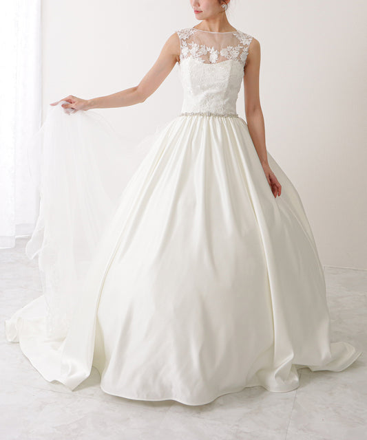 チュールトップス・パニエ付き 2WAY ハートネック プリンセスライン ウエディングドレス