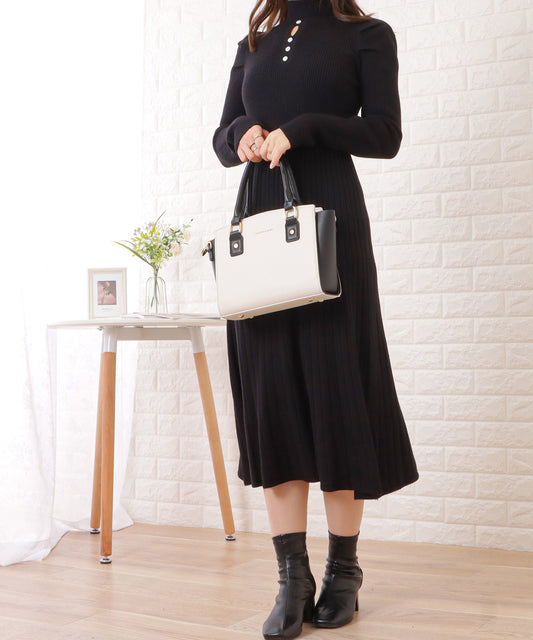 ボウタイ付き 配色 カットアウト ロング ワンピース