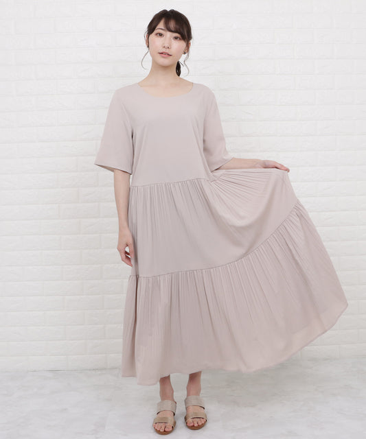 プリーツ ドッキング フェイクレイヤード シアー ワンピース