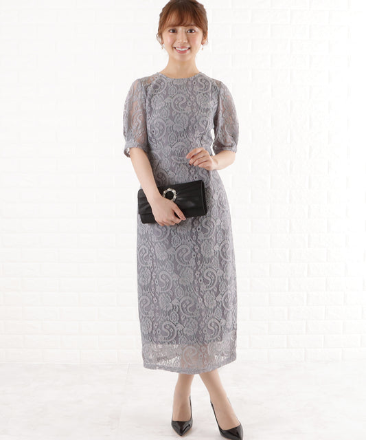 ベルスリーブレースミディ丈フレアワンピース・ドレス