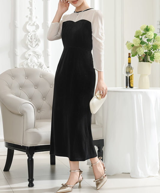 ボタニカル柄 ジャガード シアー レイヤード ロング ドレス