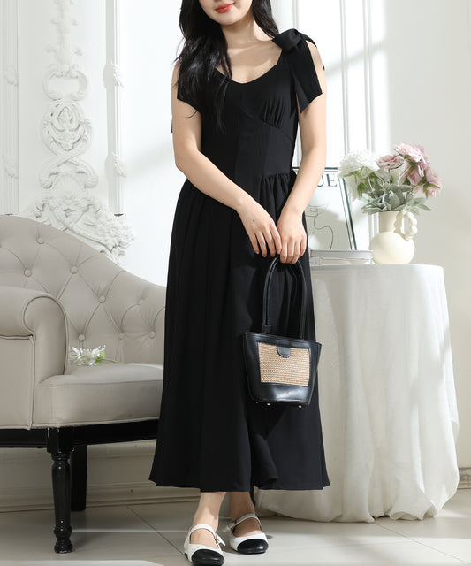 肩リボン Vネック キャミソール ギャザー ワンピース