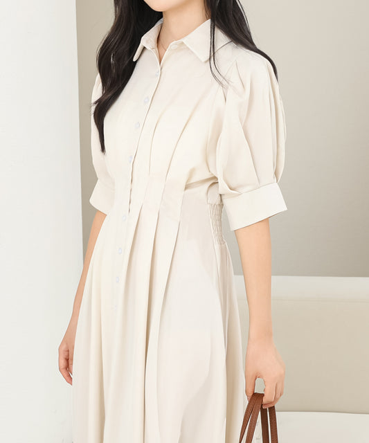 バックレースアップ パフスリーブ ロング シャツ ワンピース