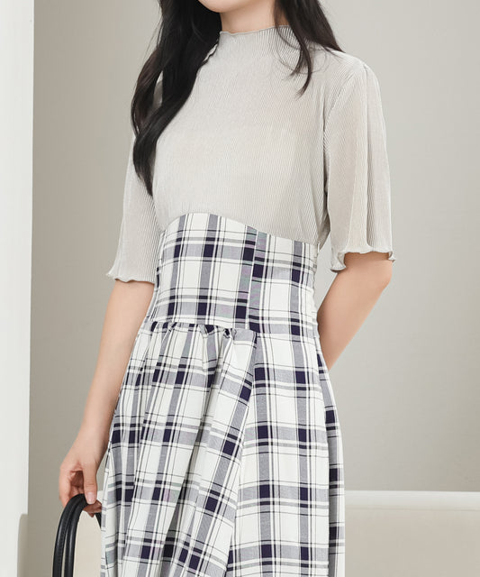 チェック柄 バックレースアップ ハイウエスト ドッキング ワンピース