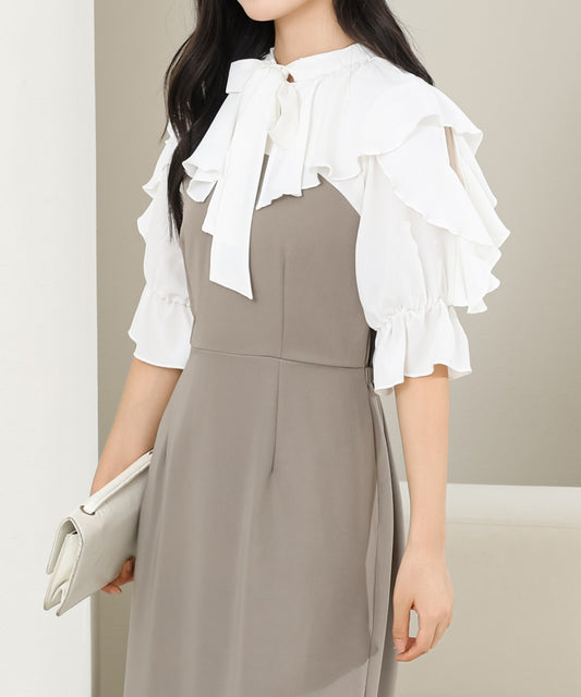 ボウタイ付き フリル カラー ドッキング マーメイド ワンピース