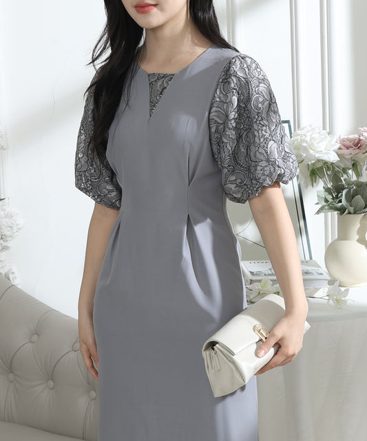 フラワー レース パフスリーブ ドッキング ワンピース