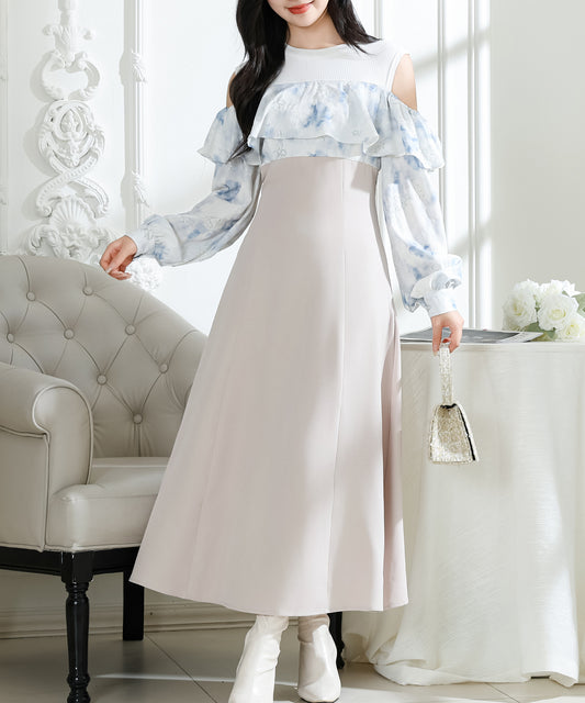 花柄 オフショル ブラウス ドッキング ロング ワンピース