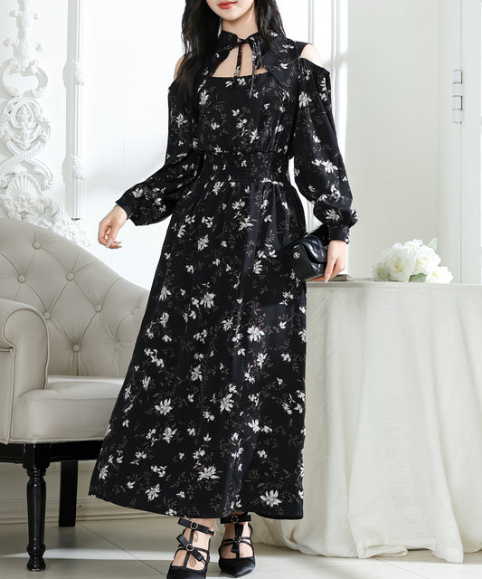 花柄 襟付き オフショル風 デザイン ロング ワンピース