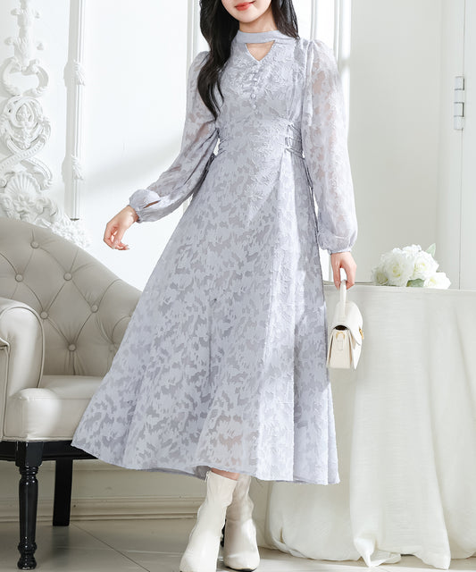 シアー ジャガードレース チョーカー風 ロング ワンピース