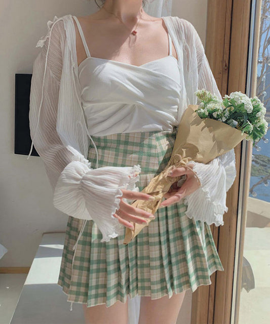 シアー フラワー リボン ペプラム キャミソール ブラウス