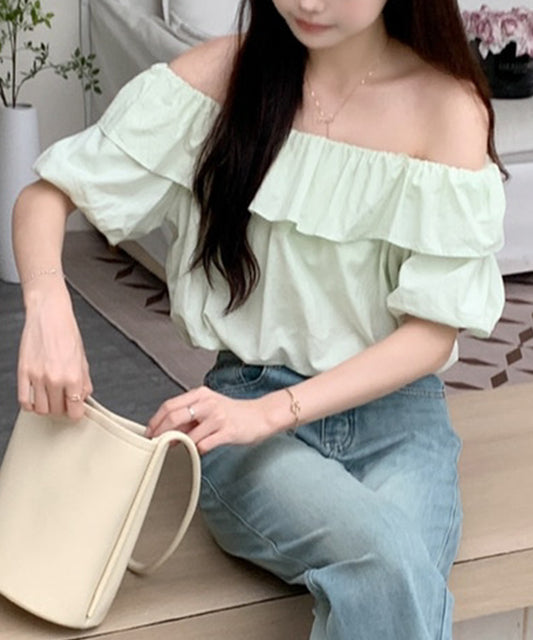 オフショルダー フリル クロップド丈 パフスリーブ ブラウス