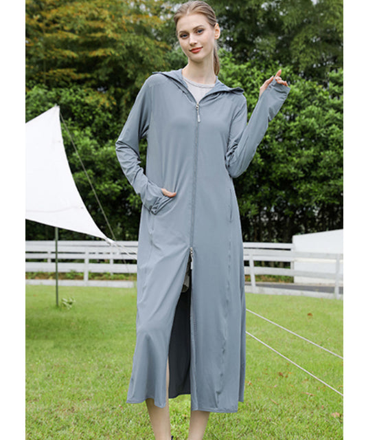 ロング丈 フロント ジップアップ バイザー付き ラッシュガード