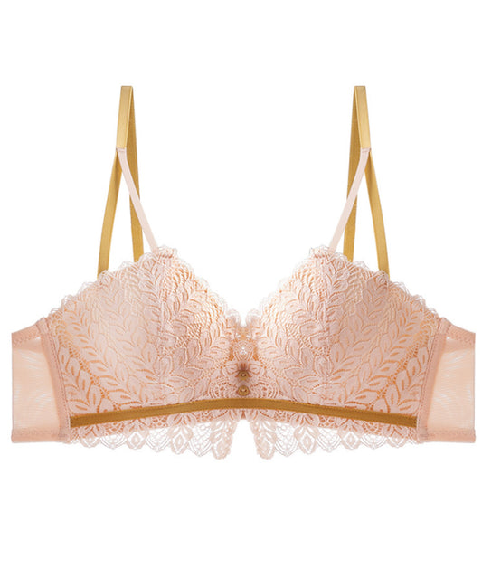 谷間メイク ノンワイヤー花柄レースブラジャー