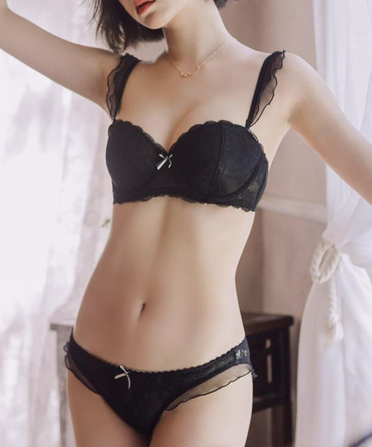 ノンワイヤー総レースブラ&ショーツ 2点セット