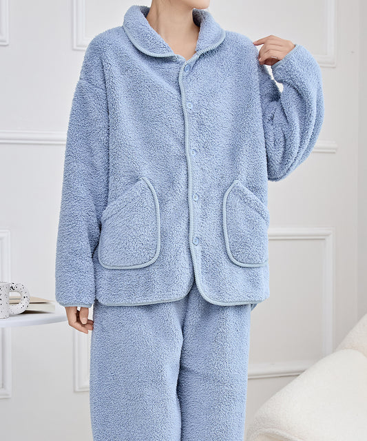 フロントボタン パイピング風 配色 ふわもこ ルームウエア