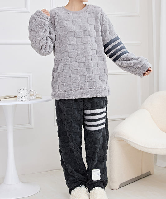 配色 チェック フリース ふわもこ 長袖 ルームウエア