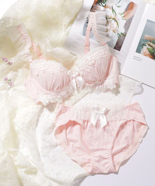 レーシィ リボンデザイン ノンワイヤー ブラ&ショーツ