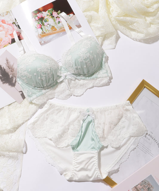 バイカラー フリル レース 3/4 ノンワイヤー ブラ&ショーツ