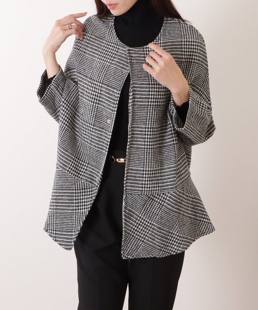 チェック柄 7分袖 ドルマン ポンチョ コート