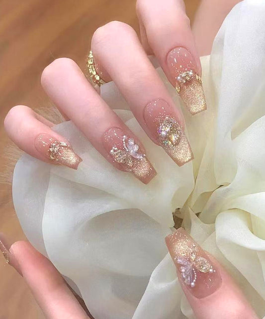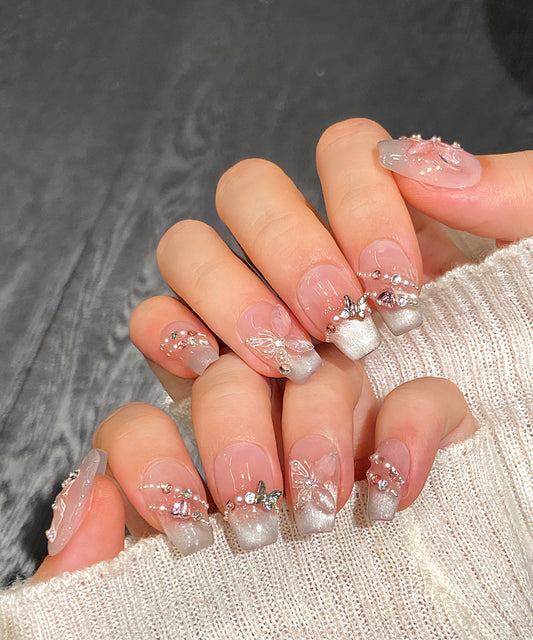 3D バタフライ ビジューライン フレンチ ネイルチップ
