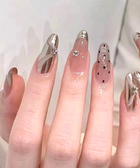 ビジュー付き ドット メタリック デザイン ネイルチップ