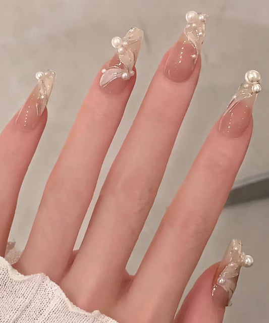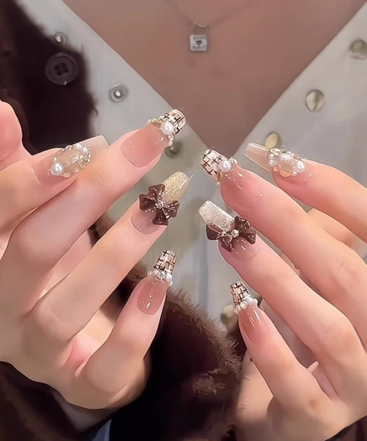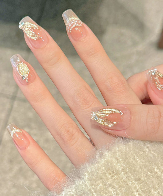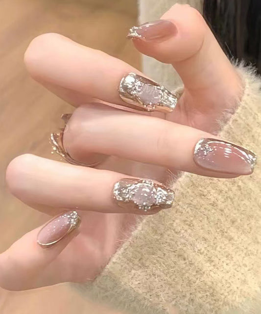 ビジュー付き ラメ フレンチ コフィン ネイルチップ