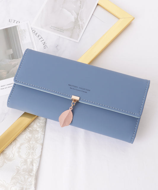 レザー調 リーフ モチーフ付き 三つ折り 長財布