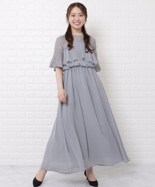 シフォン袖レースロングワンピースドレス