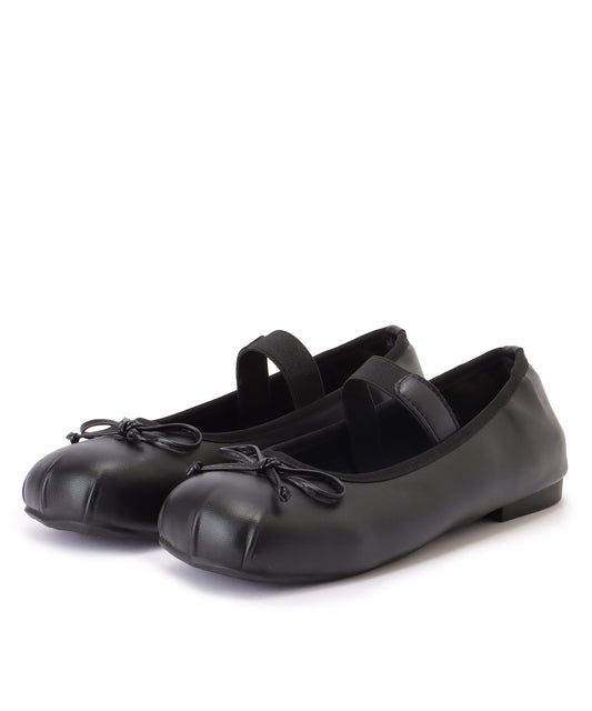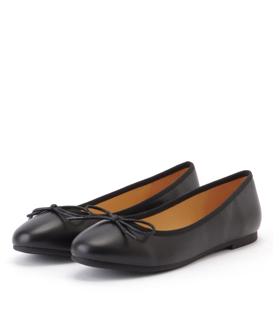 スクエアトゥ リボン付き フラット バレエ パンプス