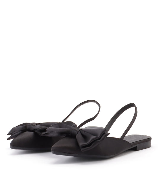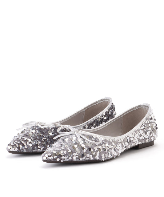 リボン付き シャイニー スパンコール ポインテッド フラット パンプス