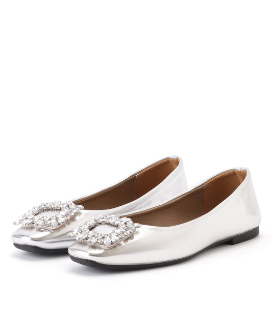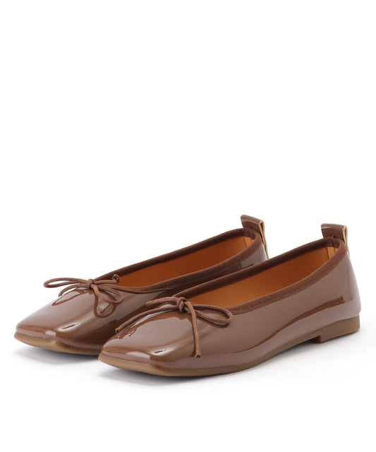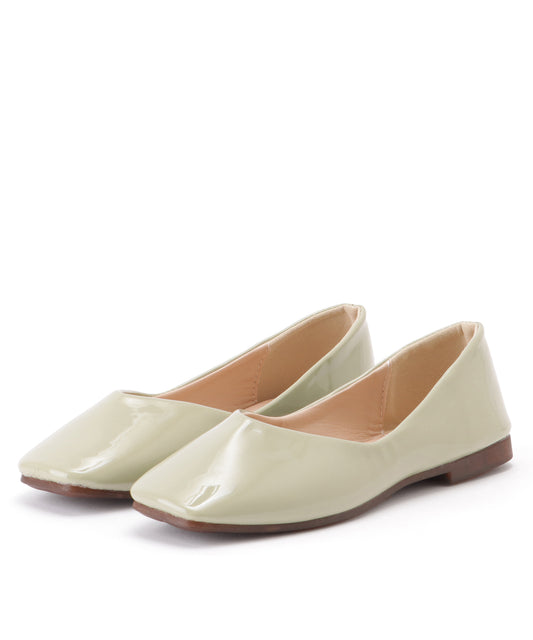 エナメル調 スクエアトゥ フラット Vカット パンプス
