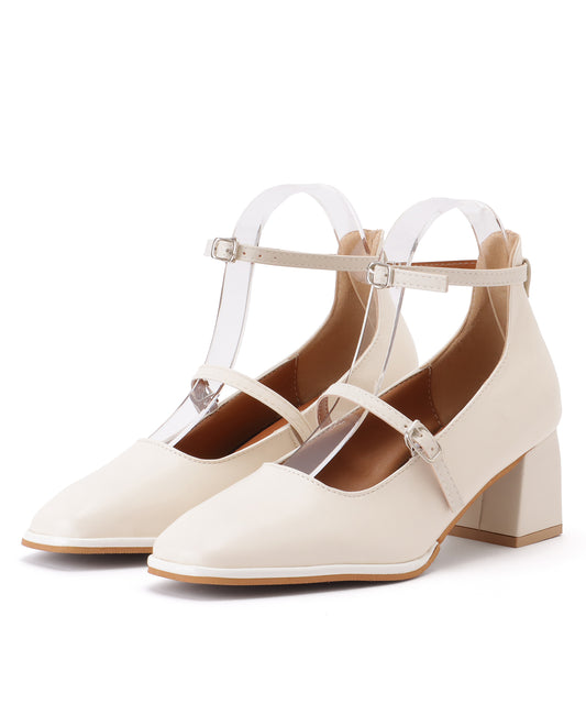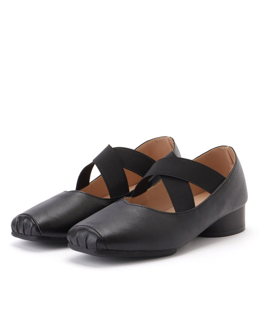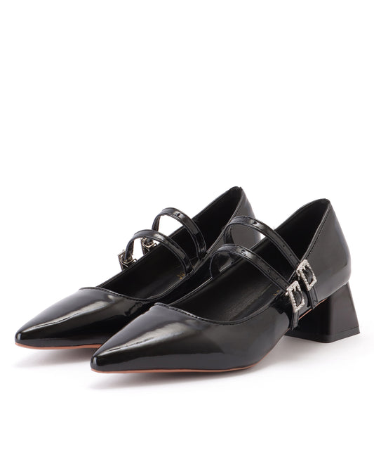 ダブル ストラップ ポインテッド チャンキー パンプス