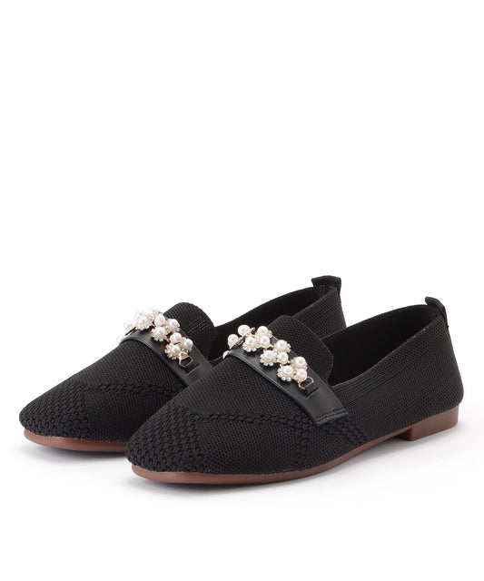 パールビジュー付き スクエア フラット メッシュ ローファー