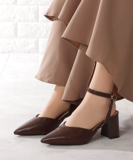 アンクルストラップ付き チャンキー サイドオープン ポインテッド パンプス