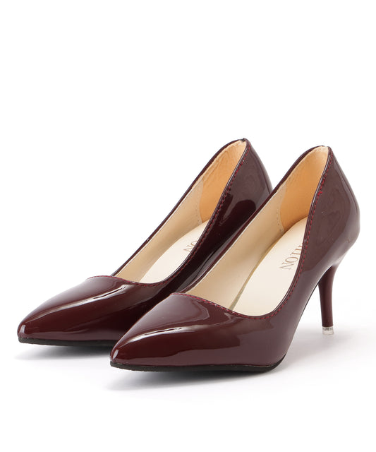 【選べるヒール3タイプ】ポインテッドプレーンピンヒールパンプス