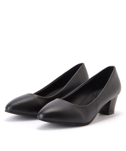 【選べるヒール3タイプ】ポインテッドプレーンパンプス