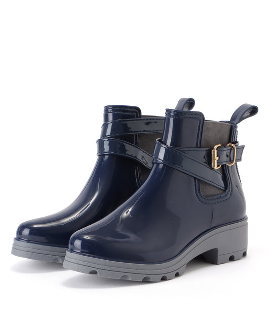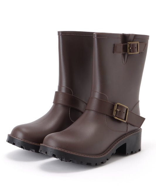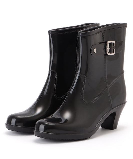 ヒールアップ ベルト付きレインブーツ ラバーブーツ