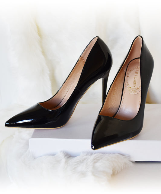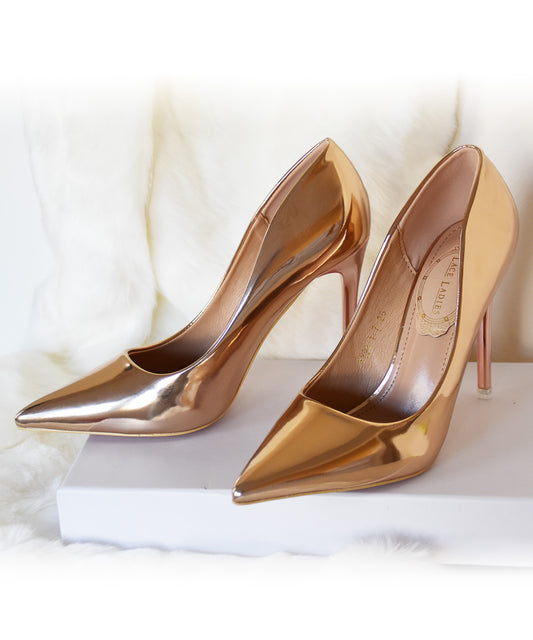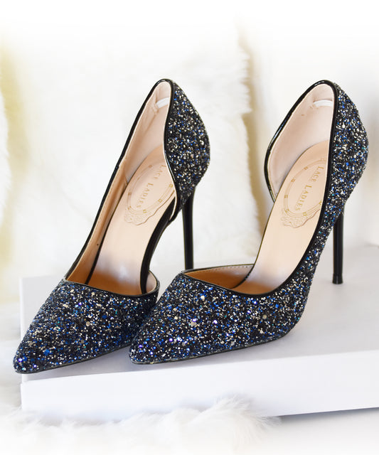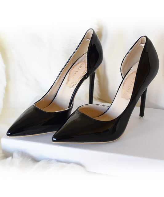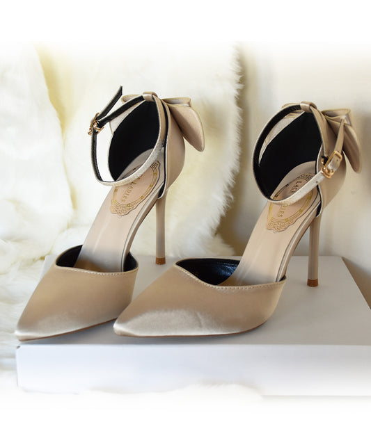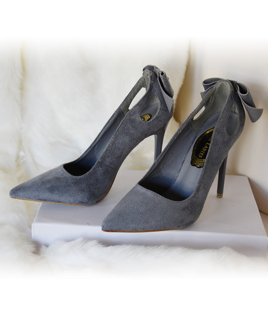 バックリボンスウェードポインテッドトゥピンヒールパンプス