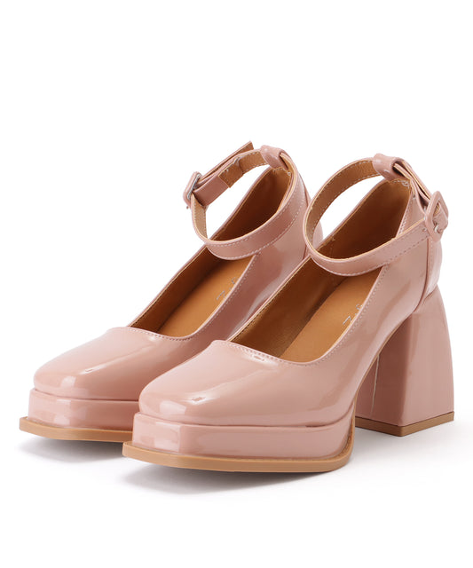 ボリュームソール ハイヒール スクエア ストラップ パンプス