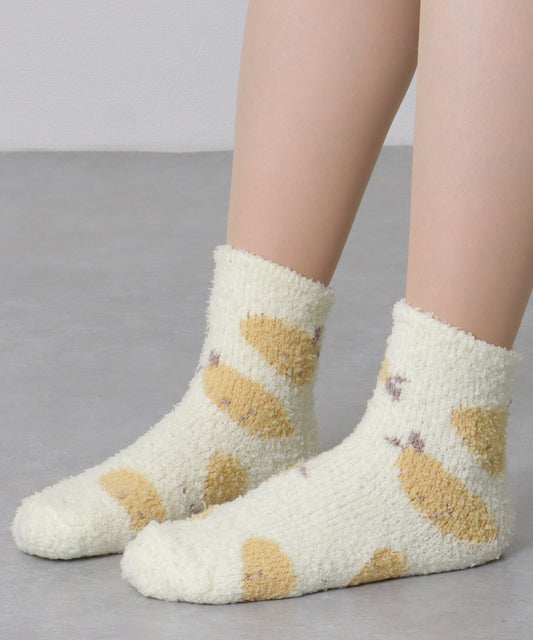 【4足セット】 フルーツ柄 ふわもこ クルー丈 ルーム ソックス